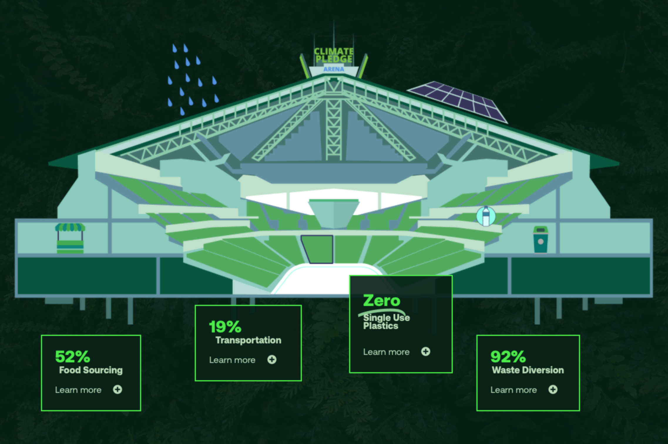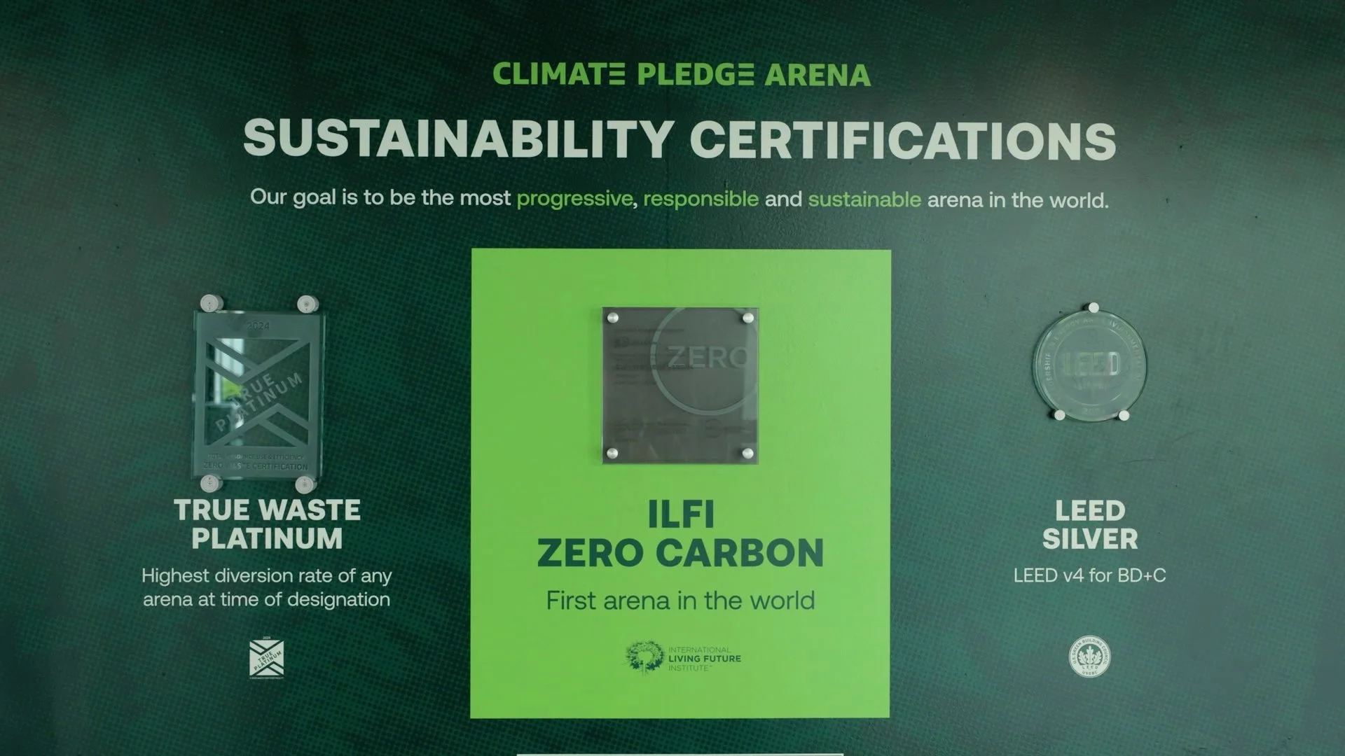[ OVERVIEW ]Our goal is to be the most progressive, responsible and sustainable arena in the world. It might sound ambitious, but that’s the point. We aren’t named after a corporation. We are named after The Climate Pledge, founded by Amazon and Global Optimism in 2019, which is a commitment from companies globally to be net zero carbon by 2040.